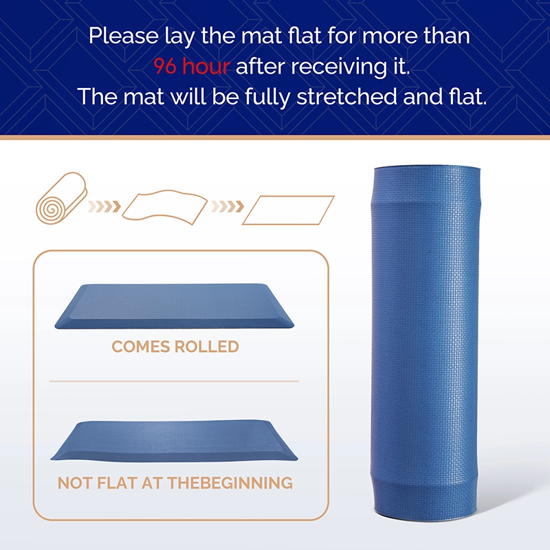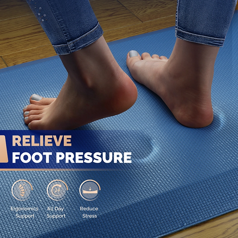 Anti fatigue standing desk mat blue relieving pressure on feet knees and backAnti fatigue office mat blue extra thick memory foam for standing workBlue kitchen mat for floor with memory foam anti fatigue supportBlue anti fatigue mat for standing desk available in multiple sizesAnti fatigue floor mat blue shipped flat without folding