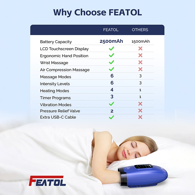 Combines compression, heat, and vibration, FEATOL hand massager with heat and compression to ease stiffness, soreness, and fatigue caused by daily use, arthritis, or carpal tunnel