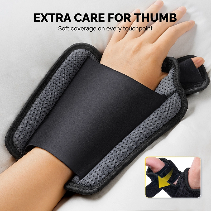 The inner lining features exclusive one-way sweat-wicking technology that quickly draws sweat away from the skin and releases it outward. This thumb brace lightweight keeps your hand dry and fresh all day long, even during extended wear or overnight use, solving the problem of stuffiness and sweat buildup common in ordinary thumb braces.